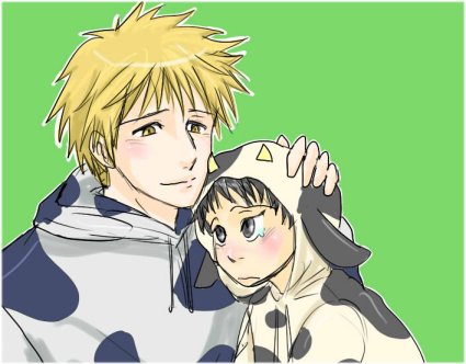 似合わないと解っていても、迅姉に着なさいと渡された牛着ぐるみも慎吾には迅とお揃いということで、嬉しかったのでした。