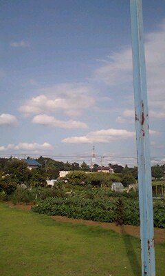 うちは田舎です。景色がのどかです。今日の青い空に白い雲。緑も青々としてます。