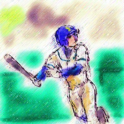 昨日の試合の写真を元にイラスト描いて見たけど、ユニフォーム色はしっかり桐青で(苦笑)。左バッターだけど、迅ではなさげ(爆)。