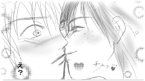 すんません、無駄にぬるいの描いてて。てか、キスシーン描いたのってこれで数回っていうくらい、描けない人なんだけど。